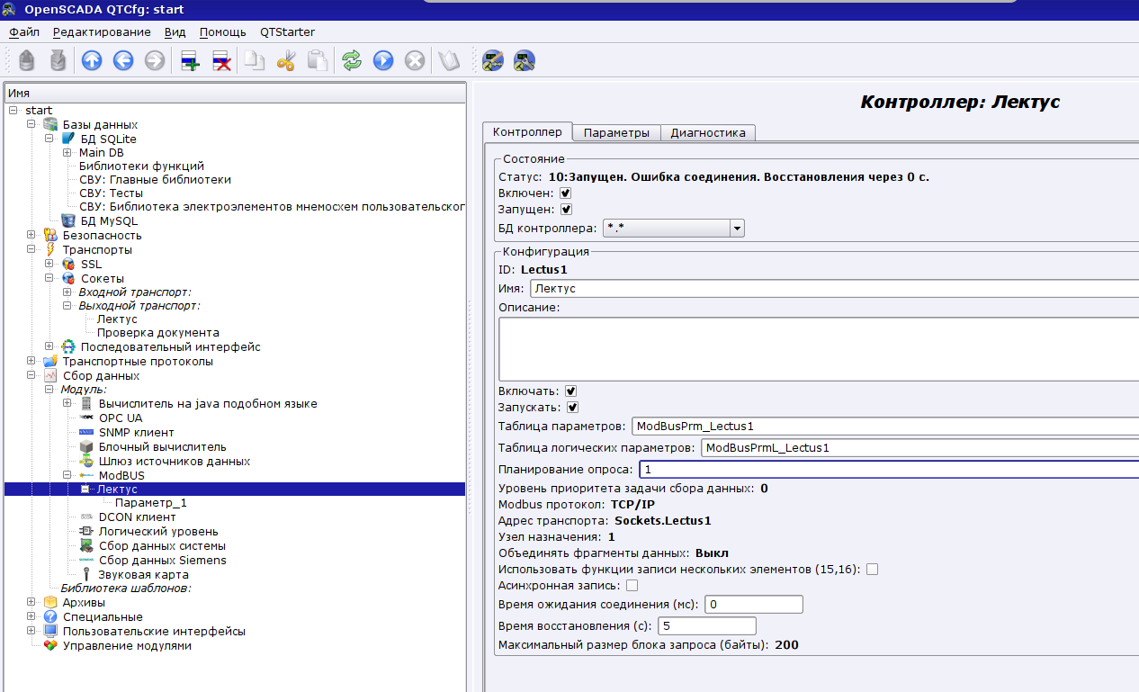 Наличие последнего говорит о том, что ранее вводился для опроса один регистр 0x100. Полная очистка и переформирования карты которых может быть осуществлена после перезапуска или даже отключения/включения объекта контроллера ModBus.